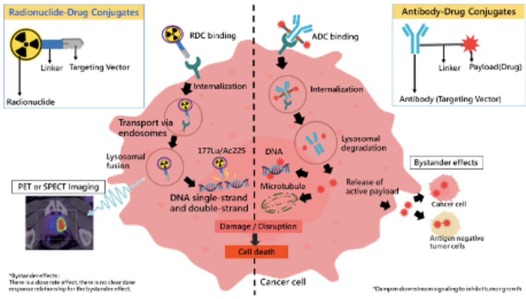 RDC的藥物傳遞機制類似於抗體偶聯藥(Antibody-Drug Conjugates, ADC)(如圖所示)。